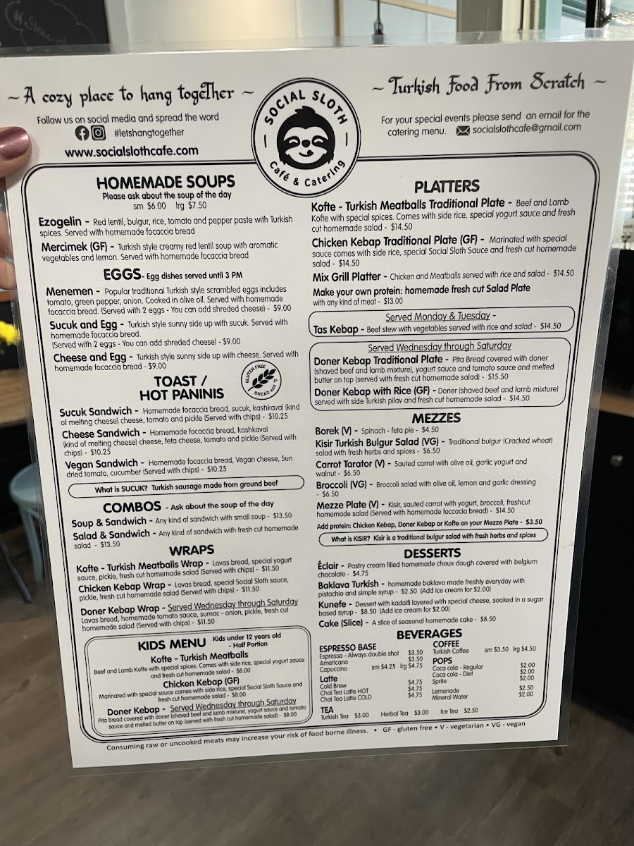 Whatever your choice, you’re sure to find a dish that hits the spot at Social Sloth Cafe & Catering.