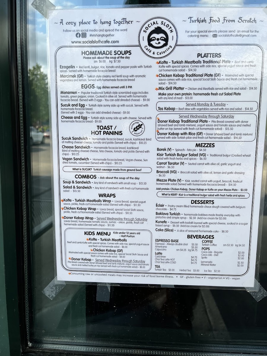 Welcome to the Social Sloth Cafe & Catering Menu, a laid-back spot where you can indulge in delicious meals while enjoying a cozy atmosphere. Located at 1754 Central Park Dr Suite F in Okemos, MI, this cafe offers a variety of freshly prepared dishes that cater to all tastes. Whether you're in the mood for a hearty breakfast, a flavorful lunch, or a sweet treat, Social Sloth has something to satisfy your cravings.
